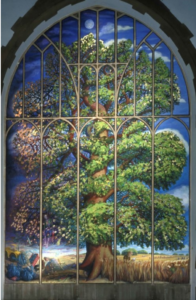 One of the interviews was with a contemporary artist, Mark Cazalet, whose work is often associated with a spiritual view of the world. One of his most famous works is a painting, oil on panel (2003), a commission for Chelmsford Cathedral, entitled The Tree of Life.