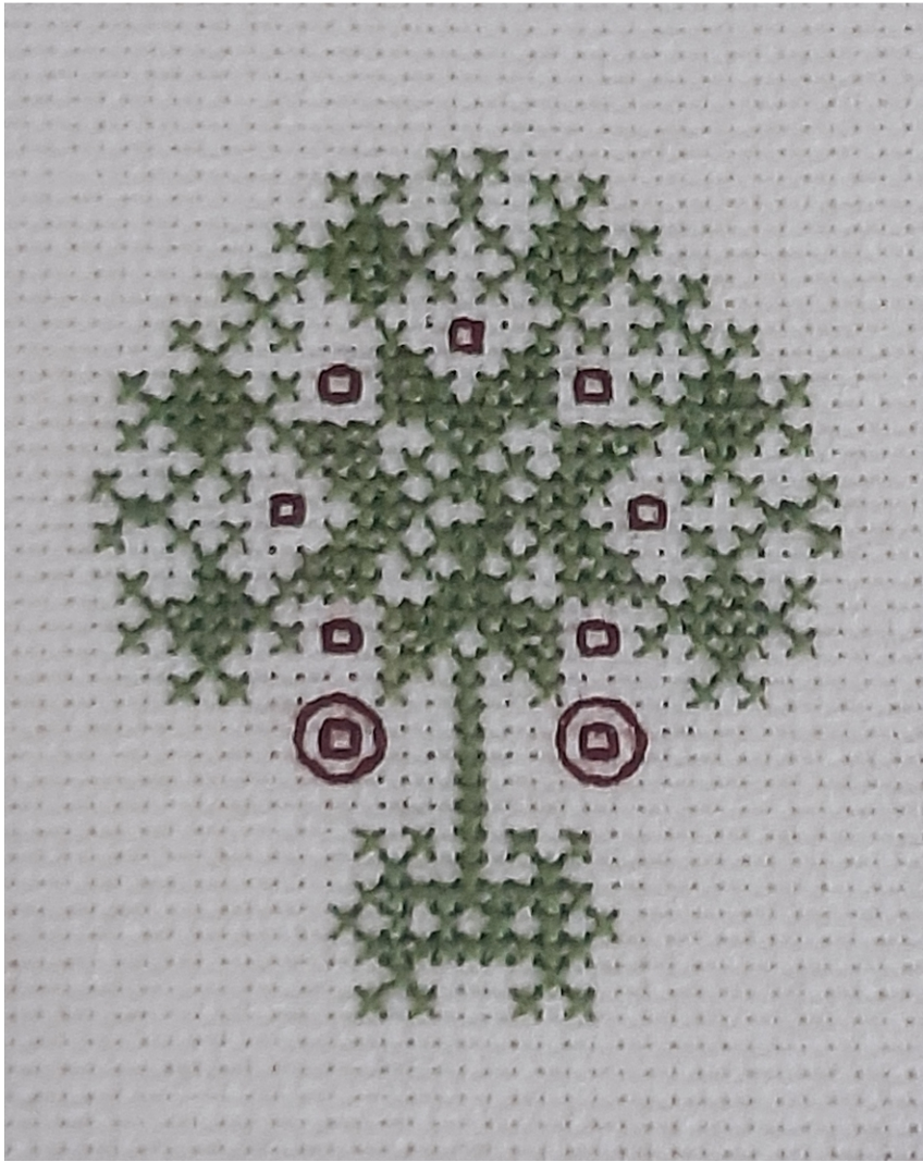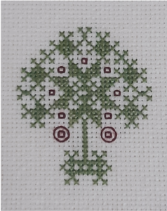 My first thought was of the cross-stitch samplers I stitched for my parents and parents-in law. The central motif in each of those samplers was a traditional Tree of Life. This tree has been planted in an urn which is said to be the source of life.